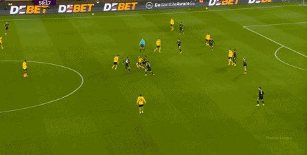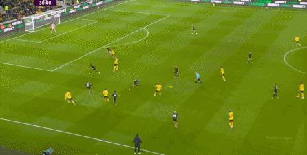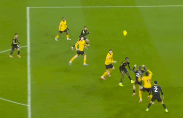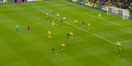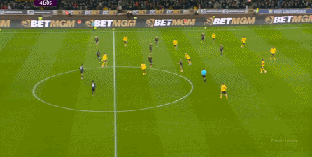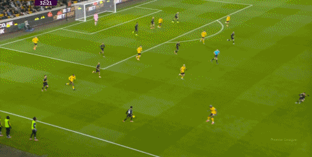 不过要注意,在比分为2-1的时候,狼队同样打出了和1-0时类似的压迫和强攻,不仅让曼联出现了后场失误和反制无力的情况: