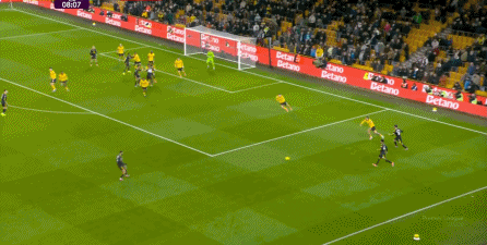 但在0-1之后,比赛逐渐发生变化,狼队投入进攻的人手和精力明显增加,这使得马兹拉维一侧出现了问题。