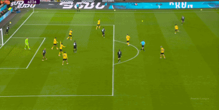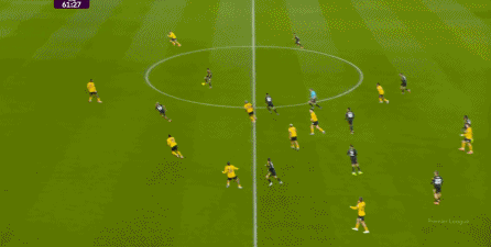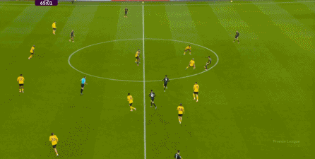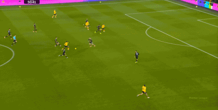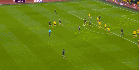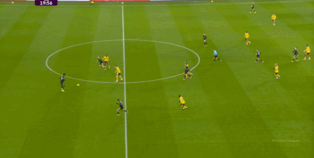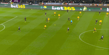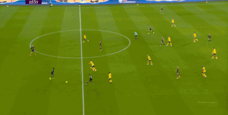虽然卢克-肖这一侧由于技术问题稍有短板,更需要中场或边锋的清晰接应,但马兹拉维和海文的表现不错,尤其是马兹拉维,甚至可以将对手吸引到自己附近,然后从对手脚边送出传球,这几脚球的质量就明显提升,让中场和前锋的职责就大大减轻了: