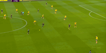 所以在上半场临近结束时,由于阿玛德-迪亚洛的松懈,曼联便出现了丢球的情况: